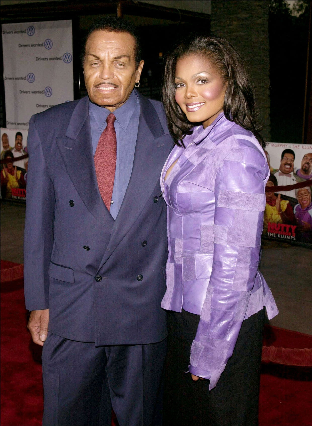 Cette photo a été prise en 2000. Janet Jackson pose avec son père avec lequel elle a toujours entretenu une relation compliquée. Elle raconte notamment qu'il l'obligeait à l'appeler par son prénom plutôt que papa.