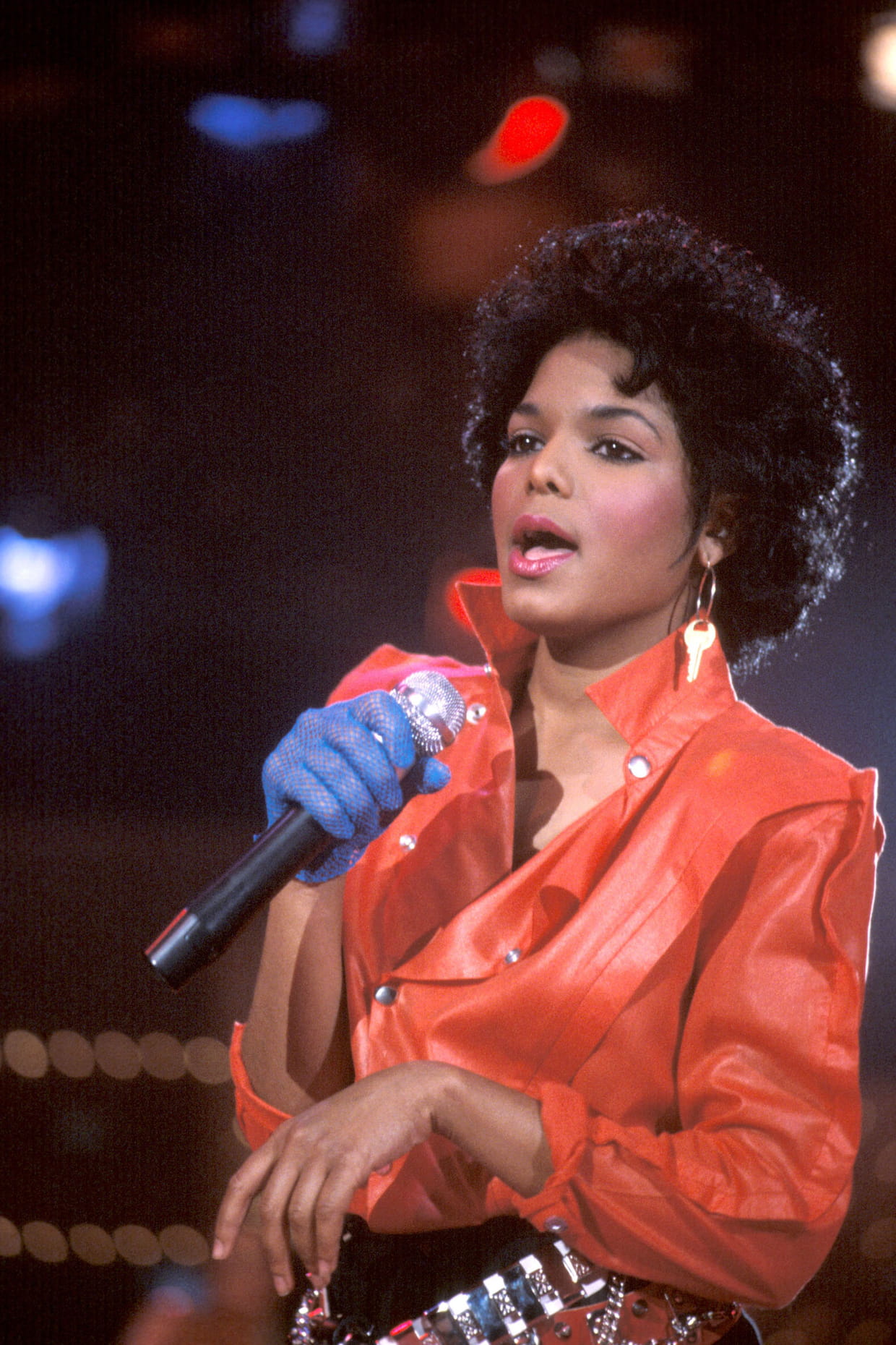 Janet fait comme son frère Michael : elle aussi porte le cuir rouge et un gant seulement à la main droite à ses débuts. Une star est née !
