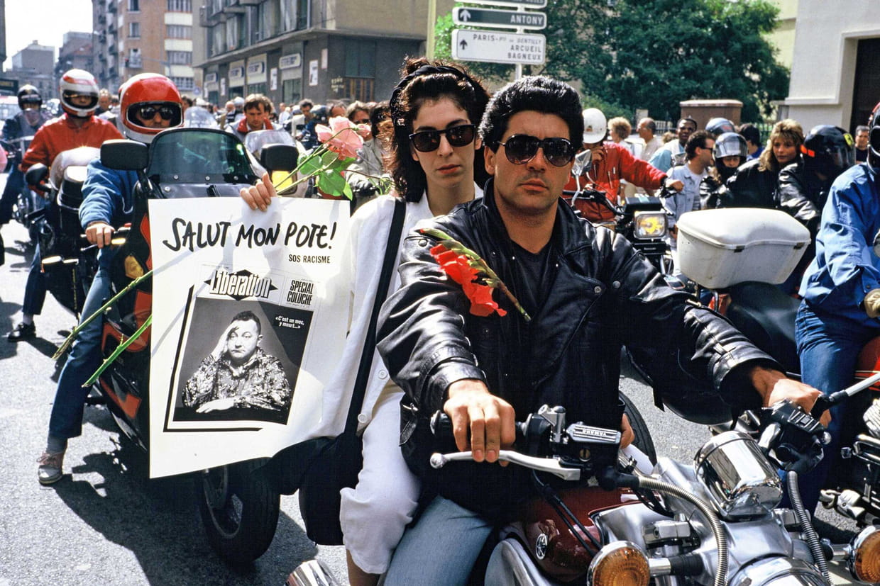 Le cortège de bikers aux obsèques de Coluche à Montrouge le 24 juin 1986.