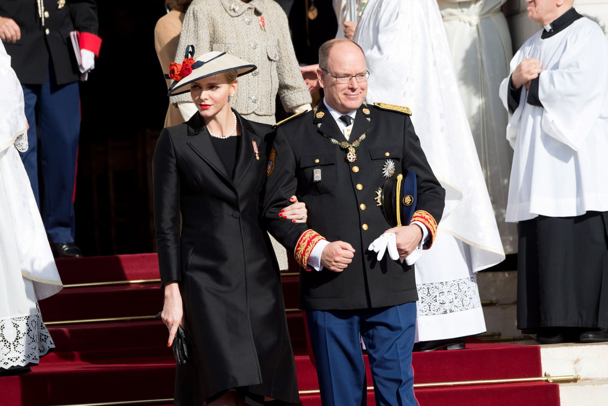 Charlène de Monaco et le prince Albert II de Monaco à la sortie de la messe solennelle