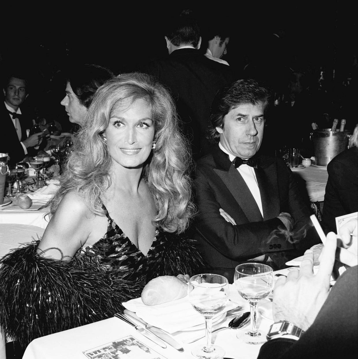 Dalida et Philippe Gildas lors d'une soirée au Moulin Rouge, en 1982.