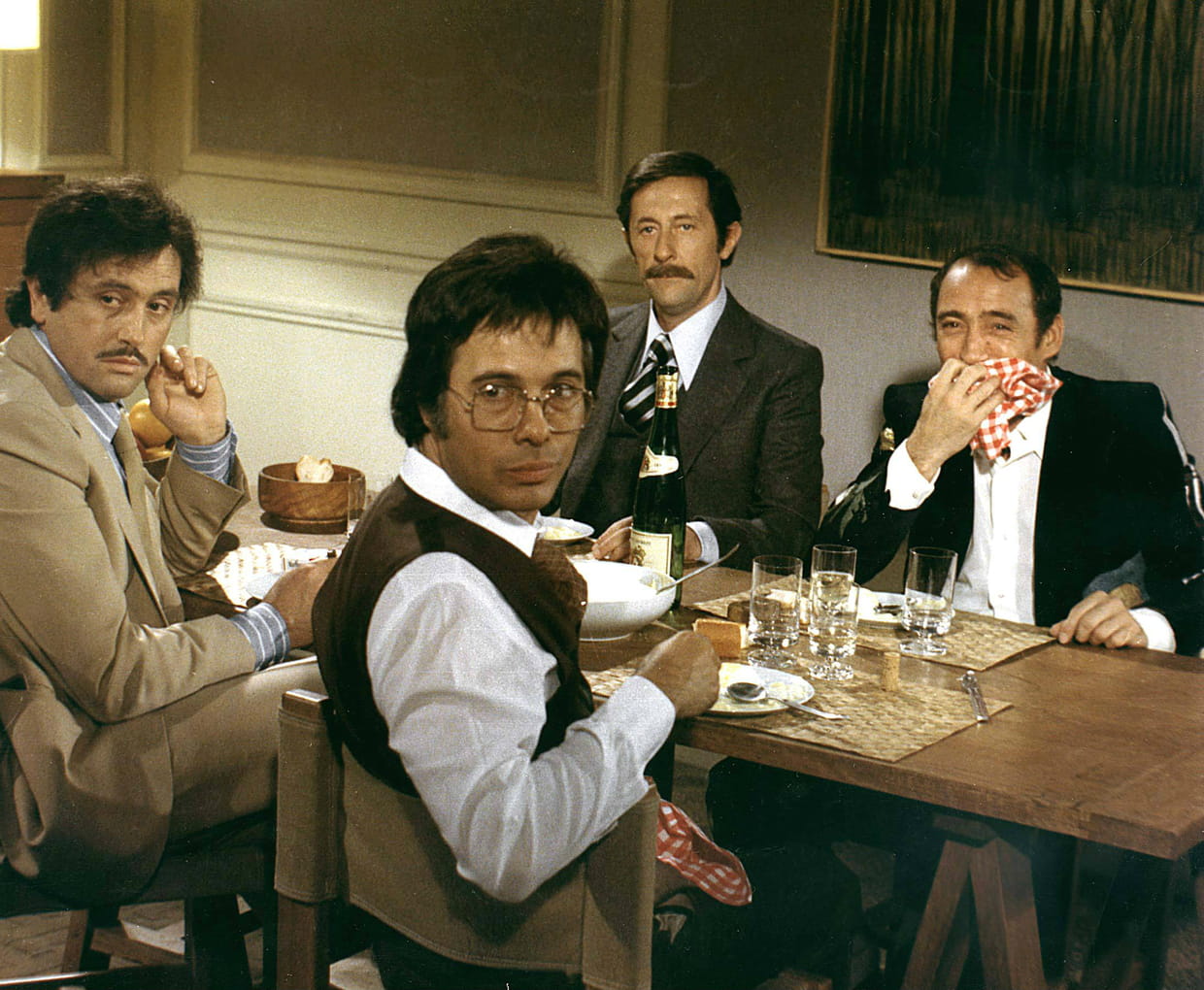 Entouré de Guy Bedos, Jean Rochefort et Claude Brasseur (1976)