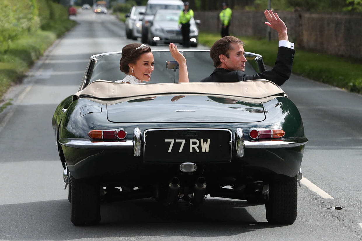 Aussitôt mariés, Pippa Middleton et son époux sont partis en voiture de l'église le sourire aux lèvres. Prochaine étape : la réception.