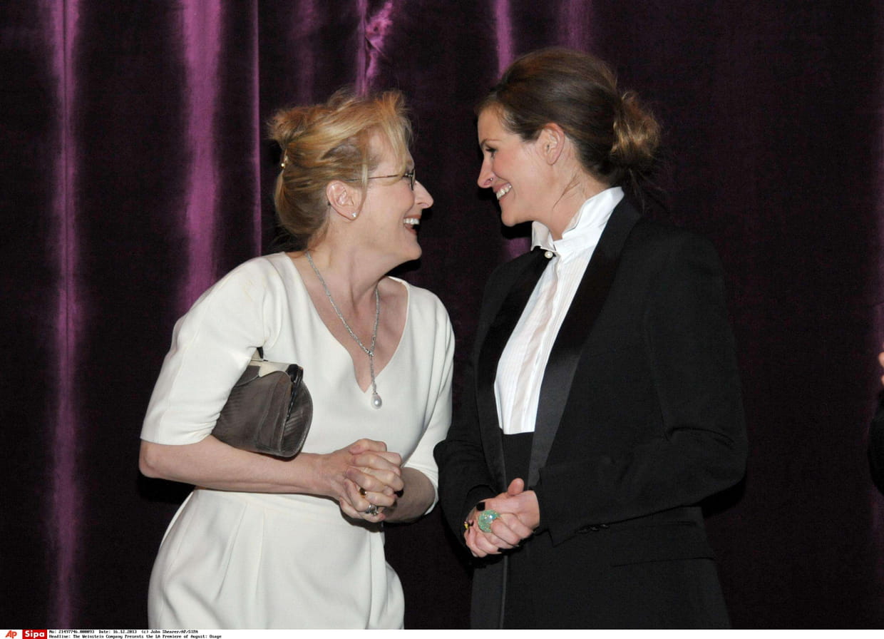 Le 16 décembre 2013, pour la première d'Un été à Osage County, Meryl Streep et Julia Roberts affichent leur complicité.