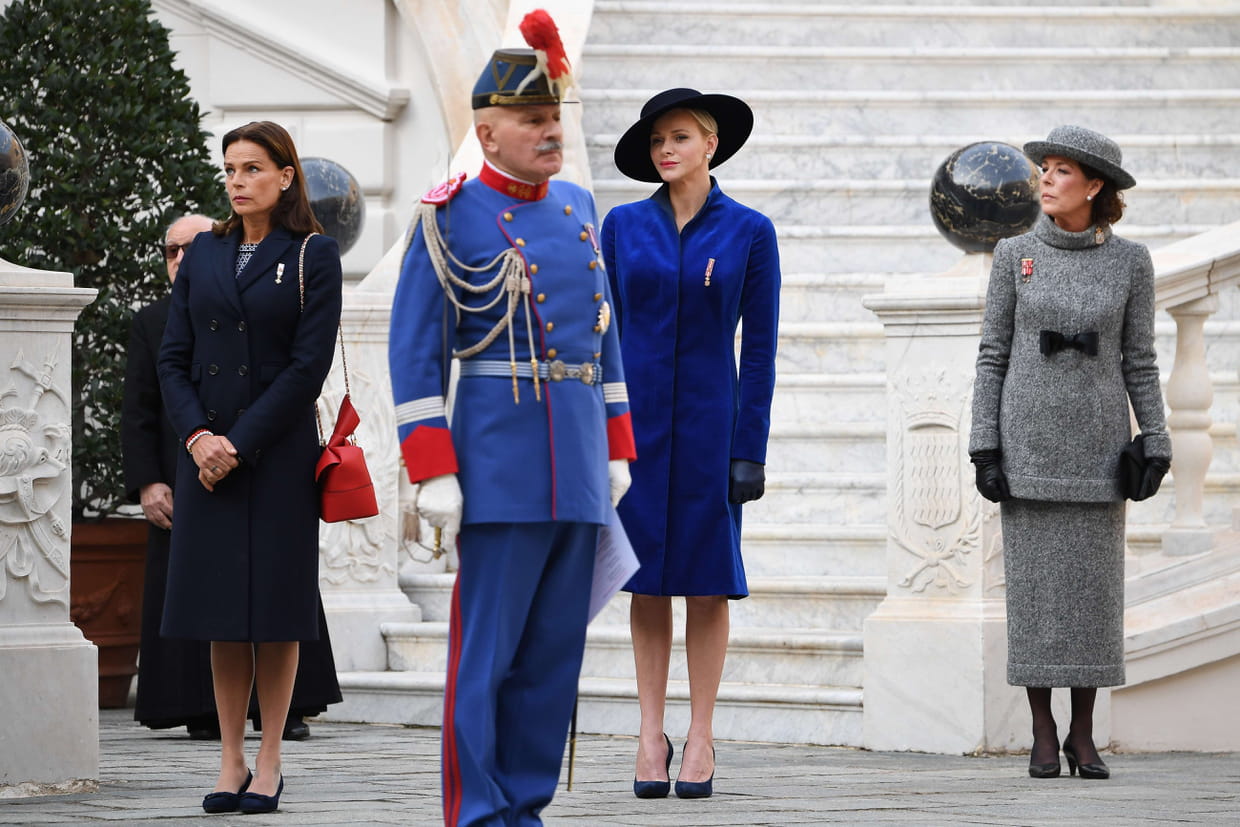 La princesse Stéphanie de Monaco, la princesse Charlène de Monaco, mais aussi la princesse Caroline de Hanovre ont assisté au défilé militaire sur la Place du Palais.