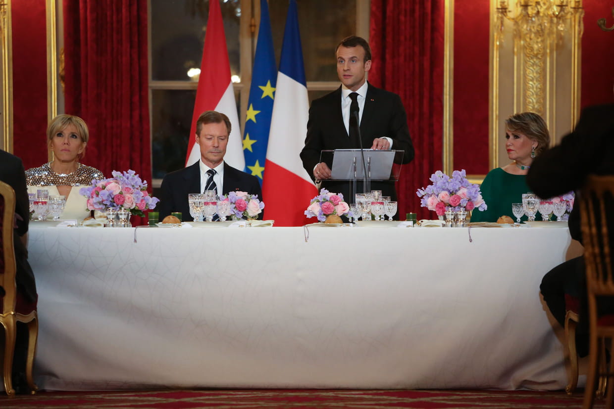 Brigitte et Emmanuel Macron attablés au côté du Grand Duc et de la Grand Duchesse de Luxembourg