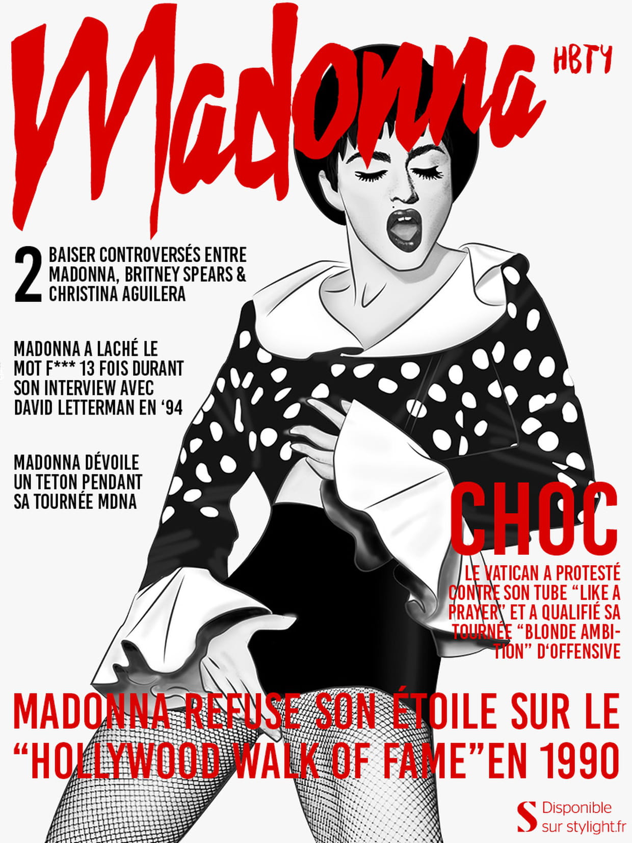 Illustration créée par Stylight, inspirée de la couverture du magazine Interview. Dans ce numéro de 1990, le magazine co-fondé par Andy Warhol revenait sur le caractère provocateur de Madonna.