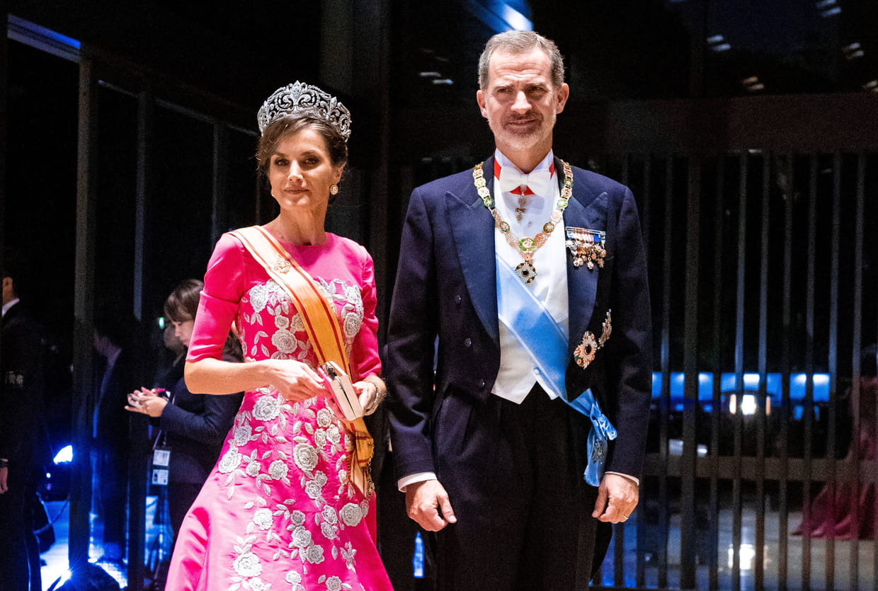 La Reine Letizia et le roi Felipe d'Espagne se rendent au banquet impérial
