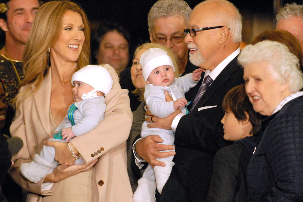 Céline Dion, René Angélil, leurs jumeaux Eddy et Nelson nés en 2010 et Thérèse Dion à Las Vegas, en février 2011.