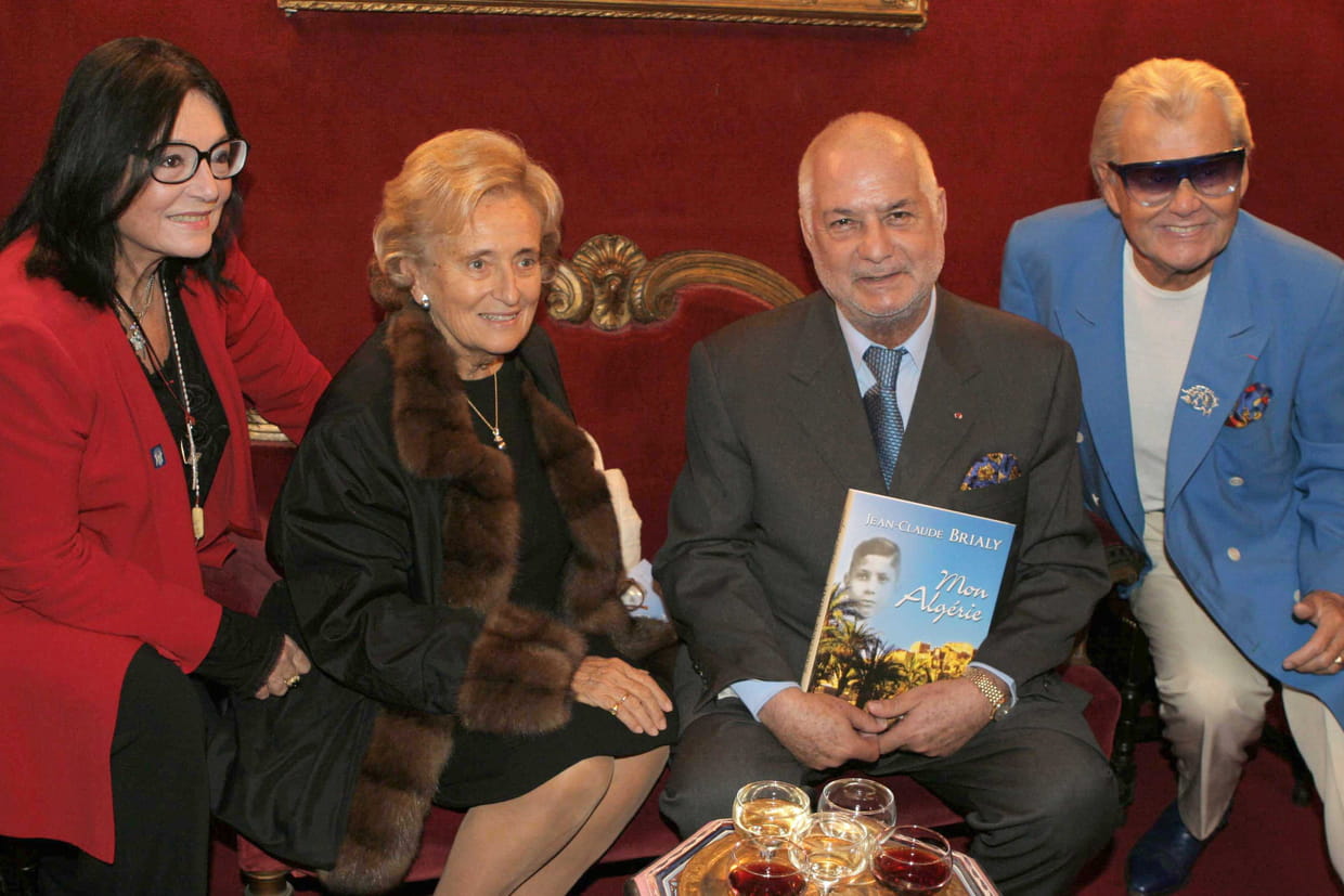 Nana Mouskouri, Bernadette Chirac, Jean Claude Brialy et Michou lors de la soirée de lancement du livre "Mon Algerie" de Jean Claude Brialy au théâtre des Bouffes Parisiens à Paris en 2006.