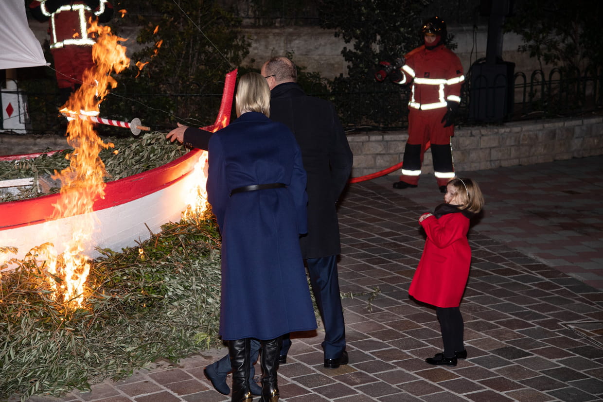 Le prince Albert II allume une barque à la cérémonie de la Sainte-Dévote, en compagnie de sa famille
