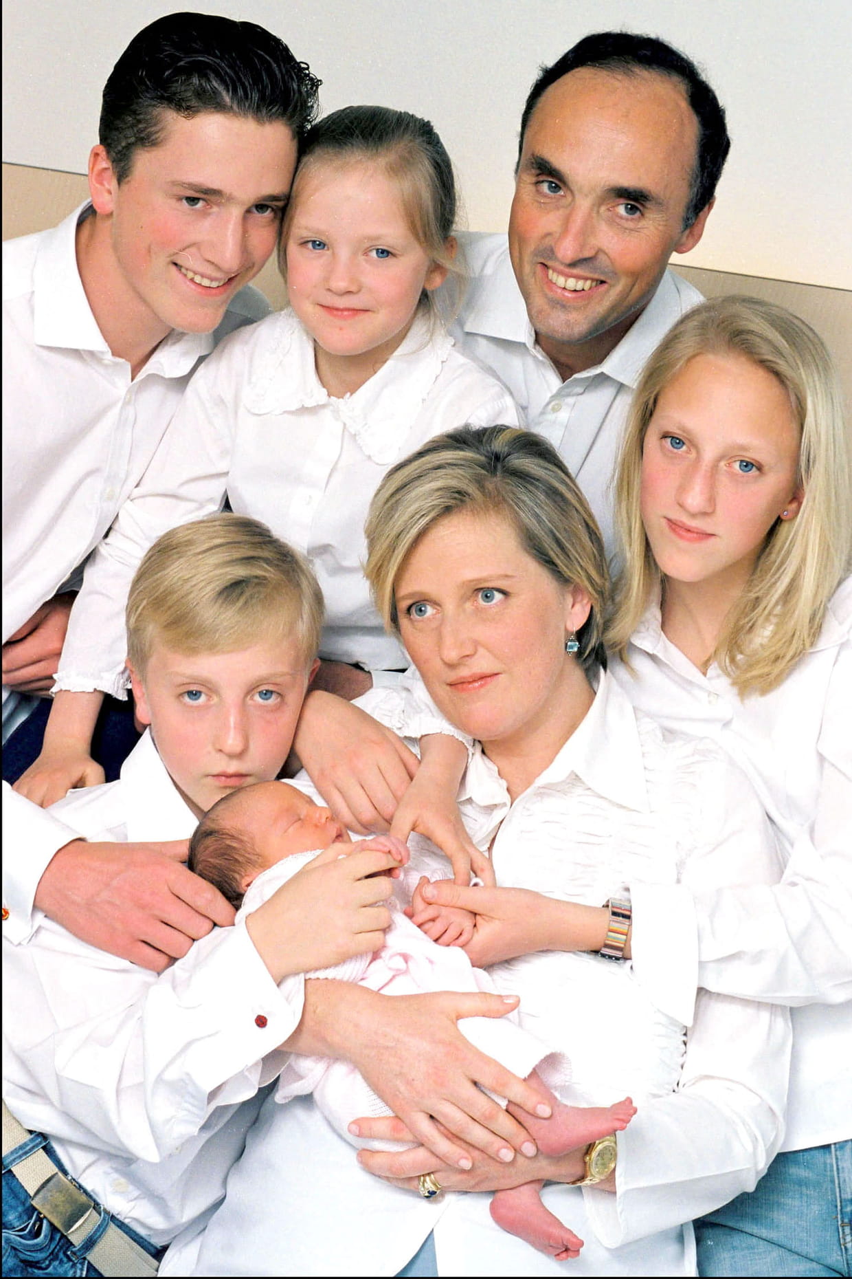 Astrid de Belgique auprès du Prince Lorenz, ses enfants et sa nouvelle née Laetitia Maria