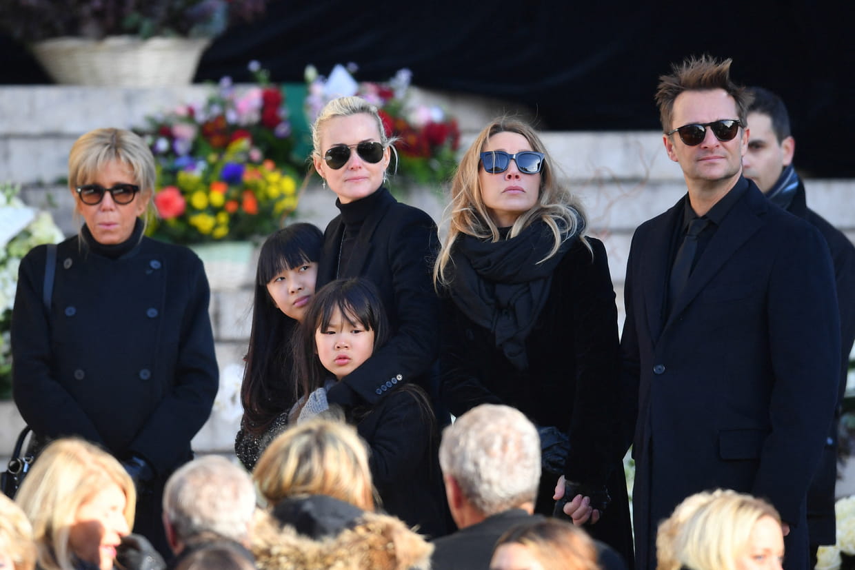 Avant que ne démarre une guerre d'héritage, Laeticia Hallyday se montre digne pour ses filles Jade et Joy, lors des obsèques de Johnny, à Paris, avec Laura Smet et David Hallyday.