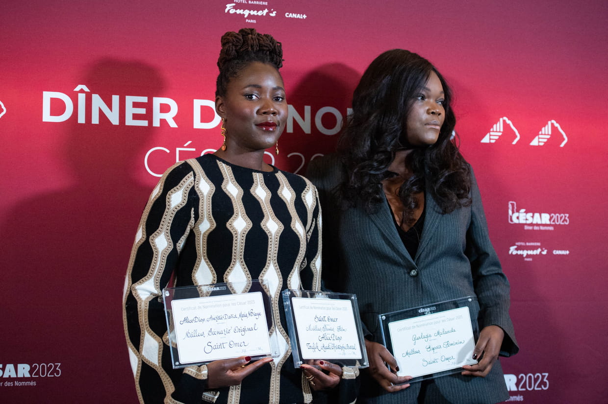 Alice Diop et Guslagie Malanda au dîner des nommés des César au Fouquet's