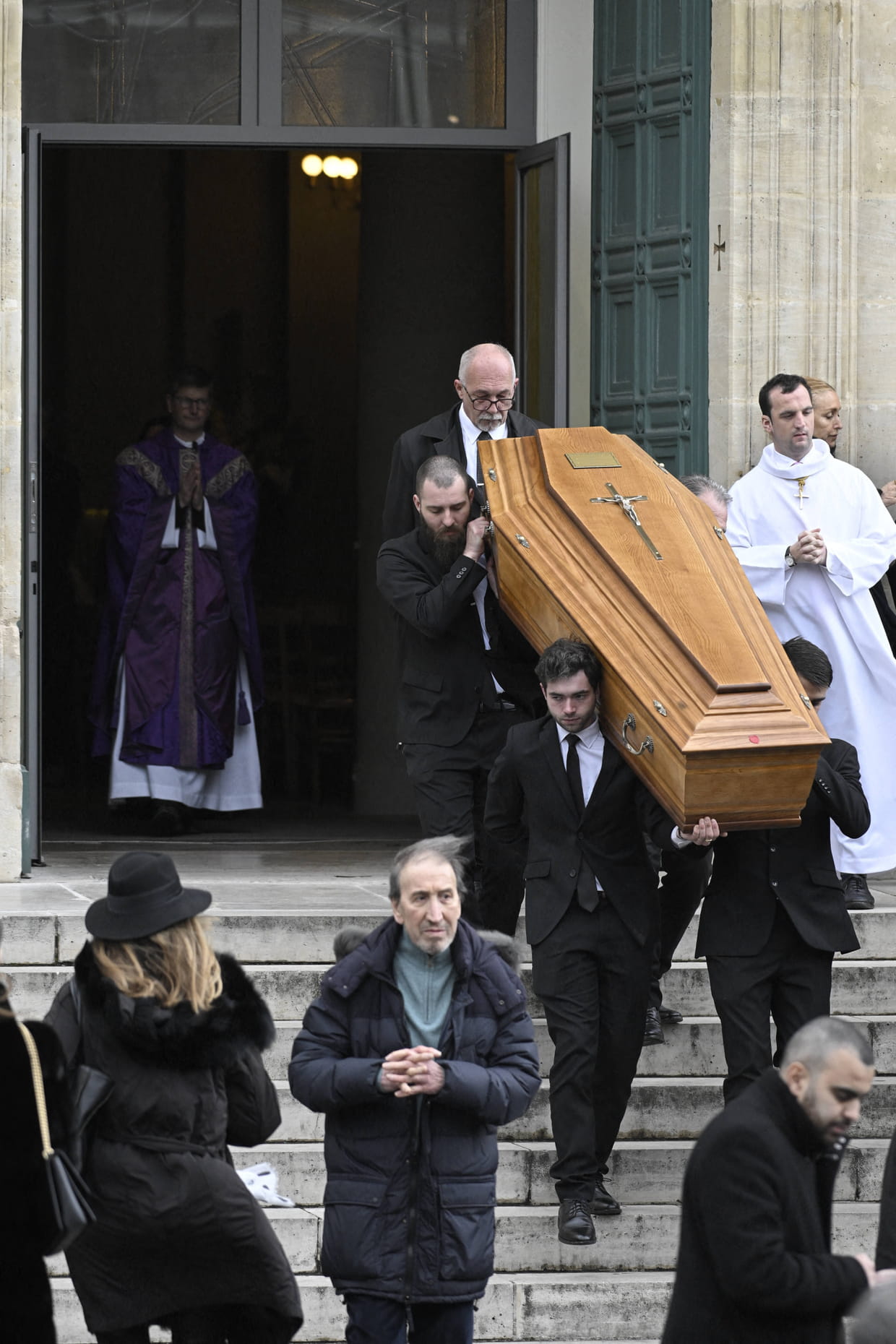 Le cercueil de Pal Sarkozy est transporté hors de l'église