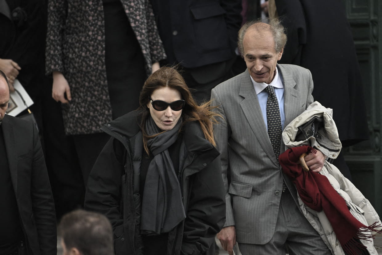 Carla Bruni-Sarkozy sort des obsèques de Pal Sarkozy
