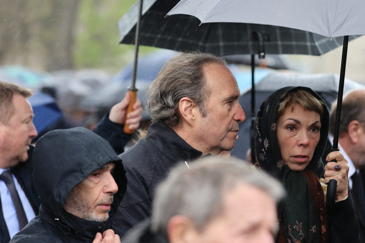 Xavier Niel sous la pluie pour faire ses adieux - Obsèques d'Hervé Temime
