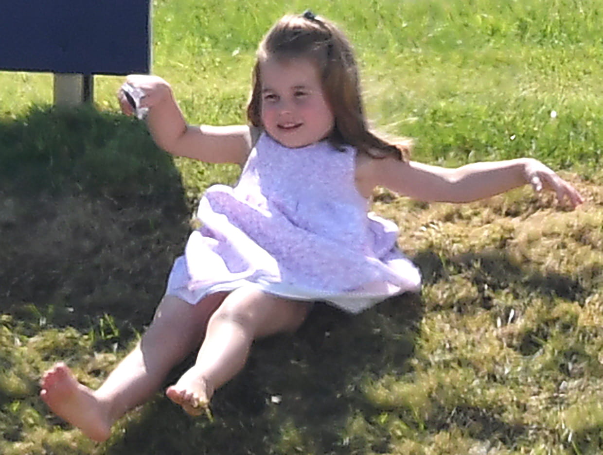 La princesse Charlotte a joué à l'acrobate, s'est roulée dans la pelouse et a fait ses légendaires grimaces.
