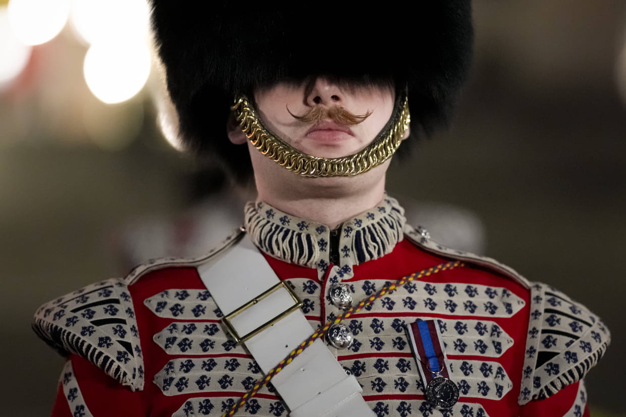 Le 3 mai, de bon matin, un garde assiste aux répétitions du couronnement de Charles III.