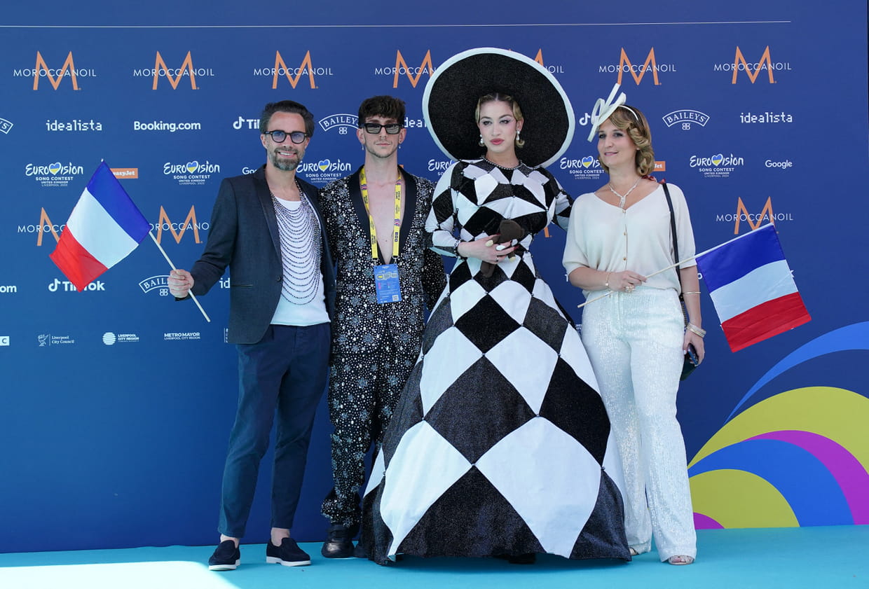 C'est en compagnie d'une partie de la délégation française que La Zarra a pris la pose au photocall de la soirée "National Lottery's Big Eurovision Welcome Party" depuis St George's Hall, à Liverpool. le 7 mai 2023.