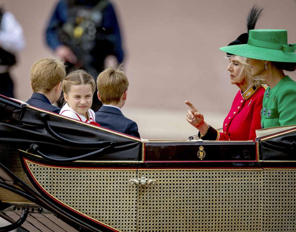 Alors que l'on sait le prince Louis du genre turbulent, la reine Camilla est apparue avec le doigt menaçant, dans la calèche royale, devant les trois enfants de Kate Middleton...