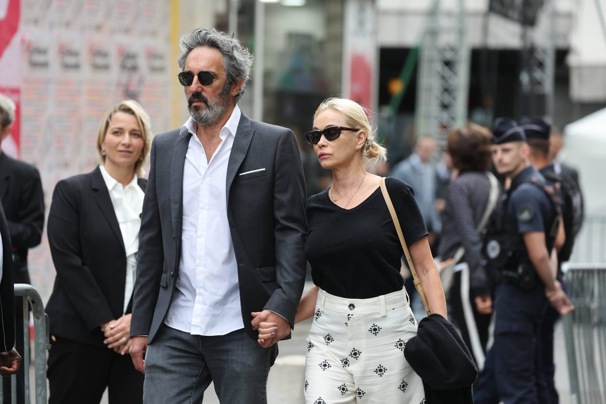 Obsèques de Jane Birkin : Emmanuelle Béart et son conjoint Frédéric Chaudier arrivent à la cérémonie