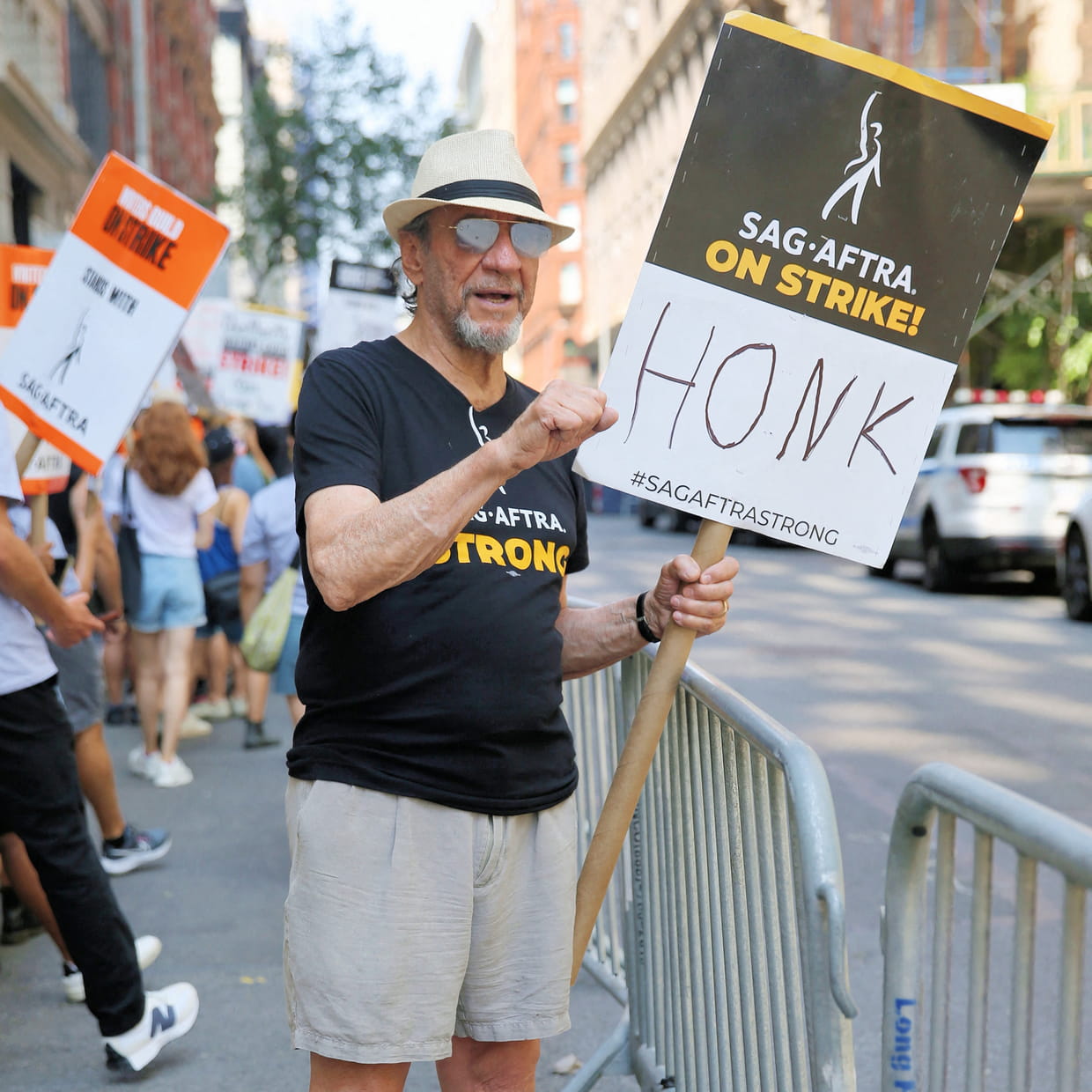 F. Murray Abraham, star de la série Netflix Le Cabinet de curiosités de Guillermo del Toro, s'est également tenu sur le piquet de grève le 9 août à New York. Il tenait un panneau sur lequel il avait écrit "klaxonnez" pour encourager les automobilistes à montrer leur soutien.