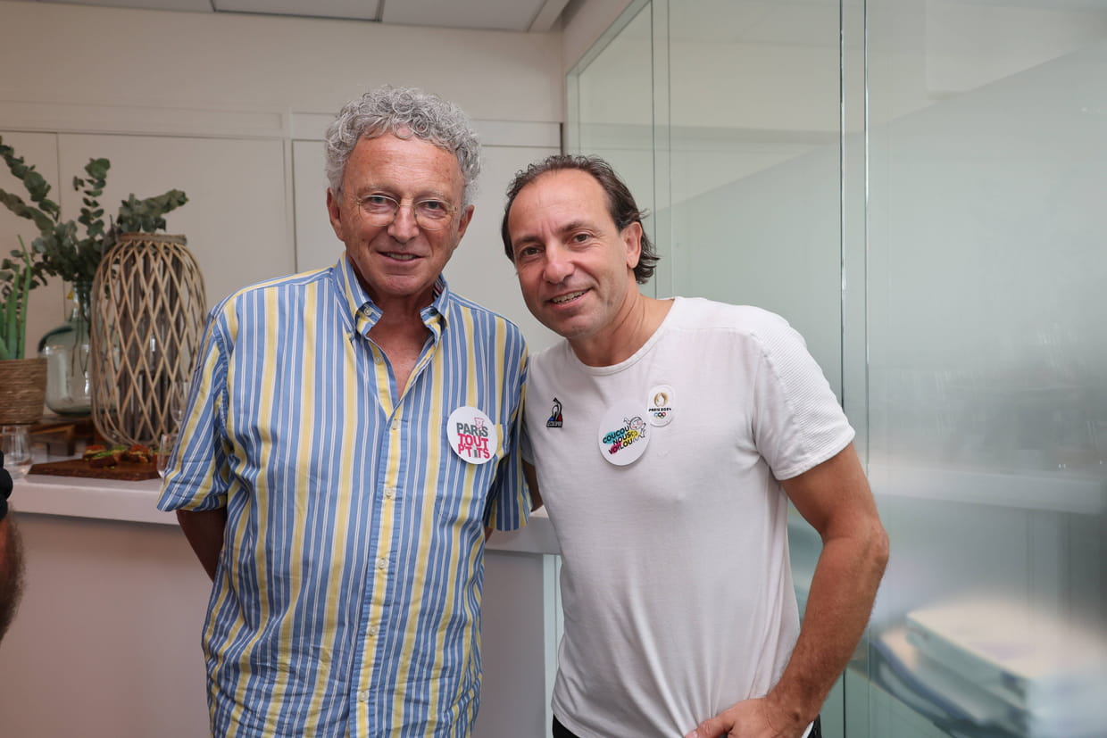 Le journaliste sportif de 70 ans et l'ancien patineur artistique de 51 ans étaient également présents à l'évènement pour soutenir Coucou nous voilou.