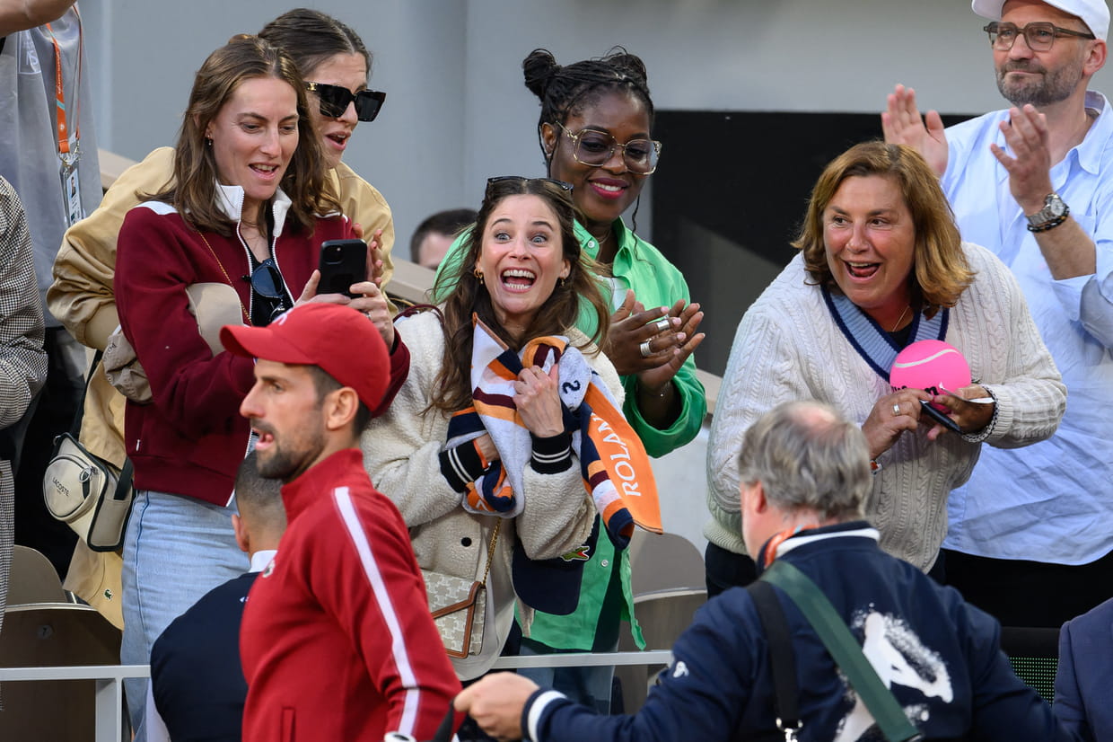 Mélanie Bernier et Claudia Tagbo étaient manifestement ravies d'assister au match du Serbe Novak Djokovic, à Roland-Garros, ce 3 juin. Mélanie Bernier est même repartie avec la serviette du joueur !