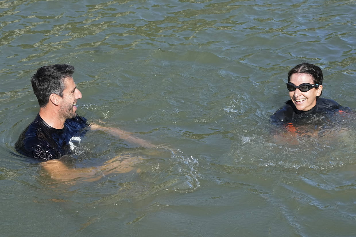 Anne Hidalgo n'était pas seule pour se baigner dans la Seine le 17 juillet. Elle était accompagnée du président du comité d'organisation des jeux, Tony Estanguet, et du préfet de la région parisienne, Marc Guillaume. Une trentaine de nageurs se sont aussi joints à la maire de Paris.