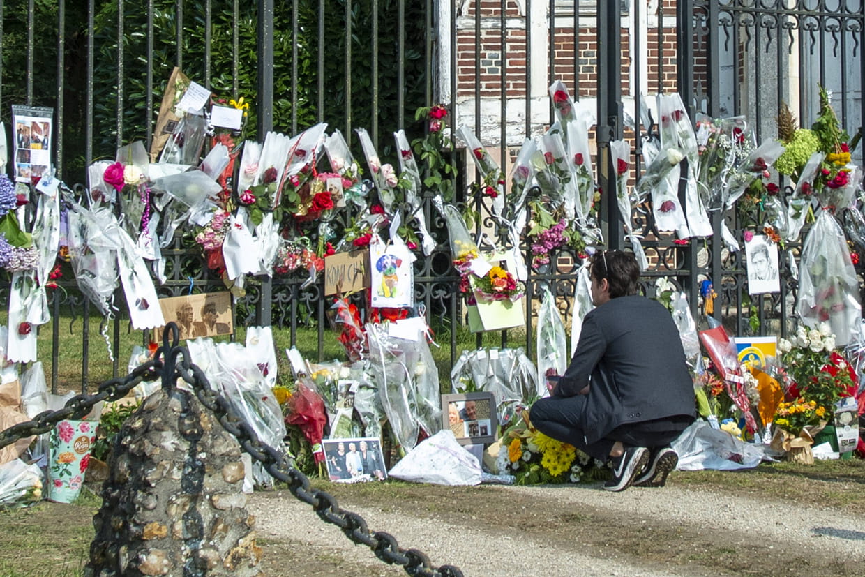 Alain-Fabien Delon admire les messages et fleurs en hommage à son père