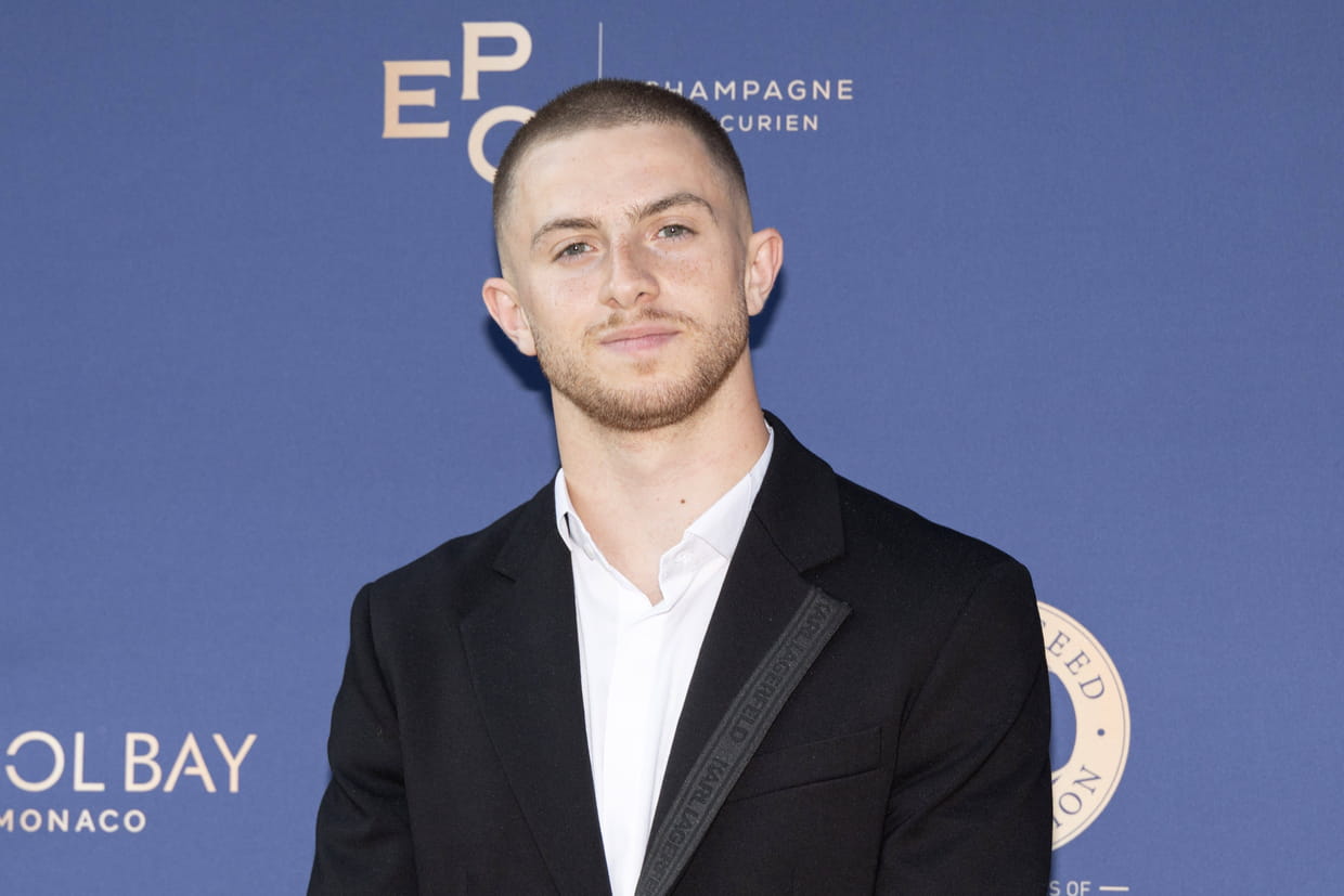 Le jeune et très populaire Youtubeur Michou a pris la pose, en costume noir élégant et chemise blanche, au photocall du gala Mouratoglou 2025.