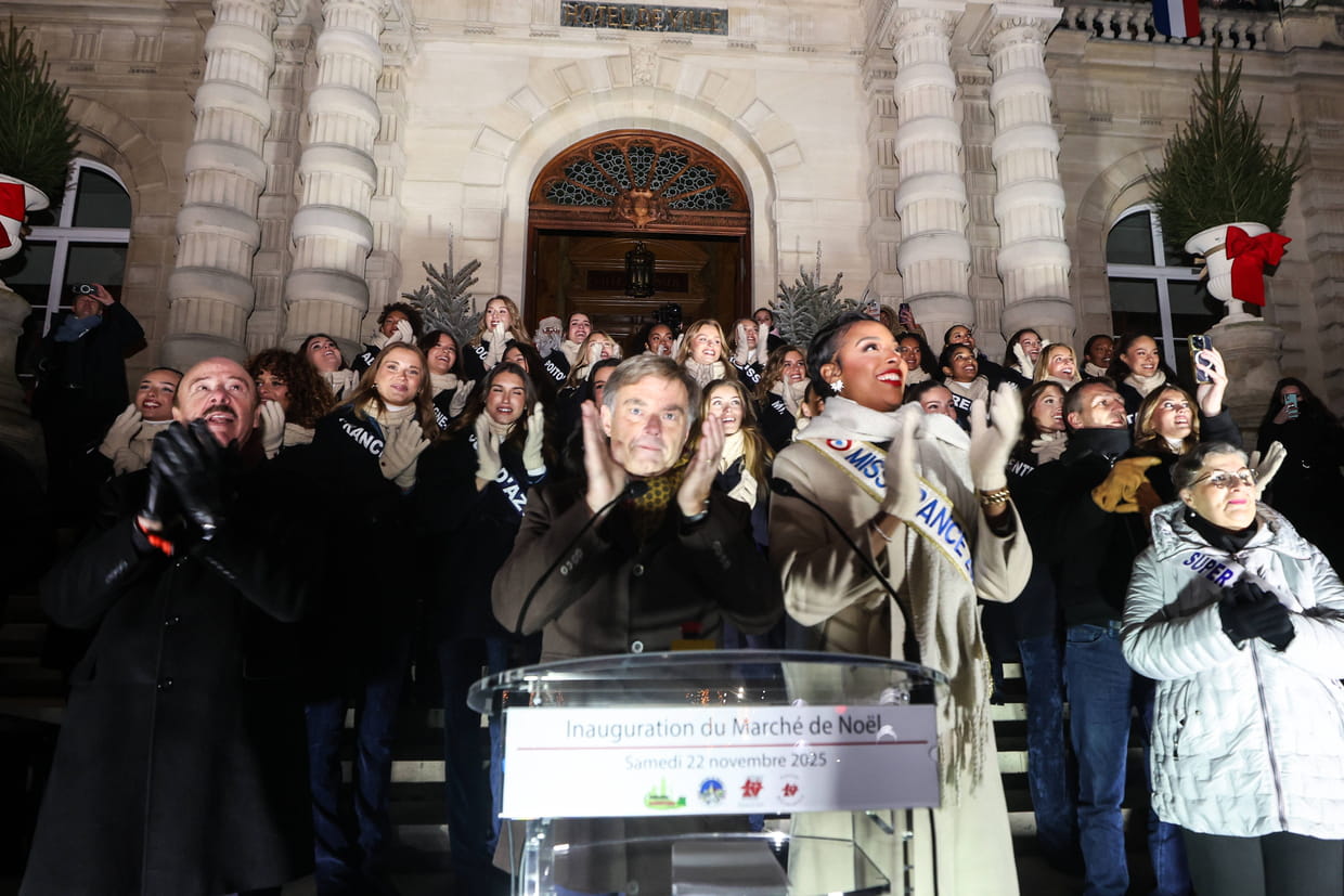 Angélique Angarni-Filopon, actuelle tenante du titre, a lancé avec les 30 candidates et les élus locaux, les illuminations de Noël depuis la mairie d'Amiens.