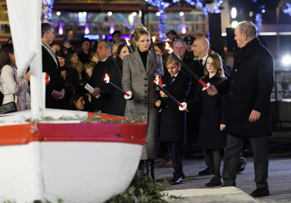 Torches dans les mains, les membres de la famille princière ont respecté la tradition en mettant le feu à une barque.