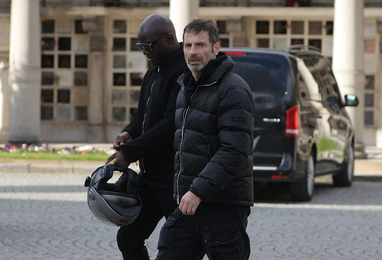 Richard Orlinski arrive aux obsèques d'Isabelle Mergault