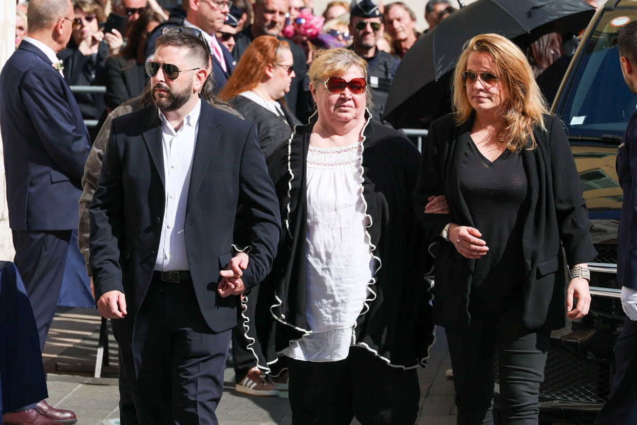 Violette, la mère de Loana, était accompagnée de Delphine, une amie proche de la défunte. Non loin de là, la fille de Loana, Mindy, et sa petite-fille, Maelysse, étaient cachées sous un parapluie noir (en arrière-plan de la photo) afin de se rendre aux obsèques sans que leurs visages ne soient remarqués. La fille de la défunte, désormais âgée de 28 ans, avait refusé tout contact avec elle de son vivant.