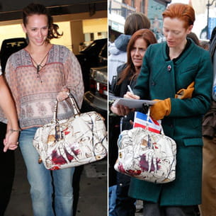 On sent l'été qui approche avec cette nouvelle création Prada sur l'épaule de Jennifer et Tilda ! © Prada