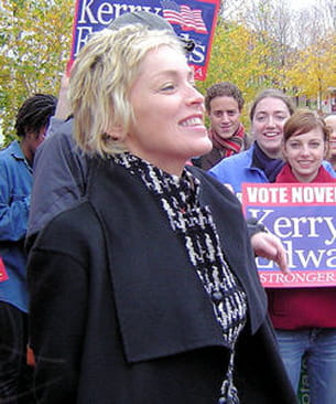 Sharon Stone lors d'une manifestation en faveur de John Kerry en 2004. © Braham Ketcham
