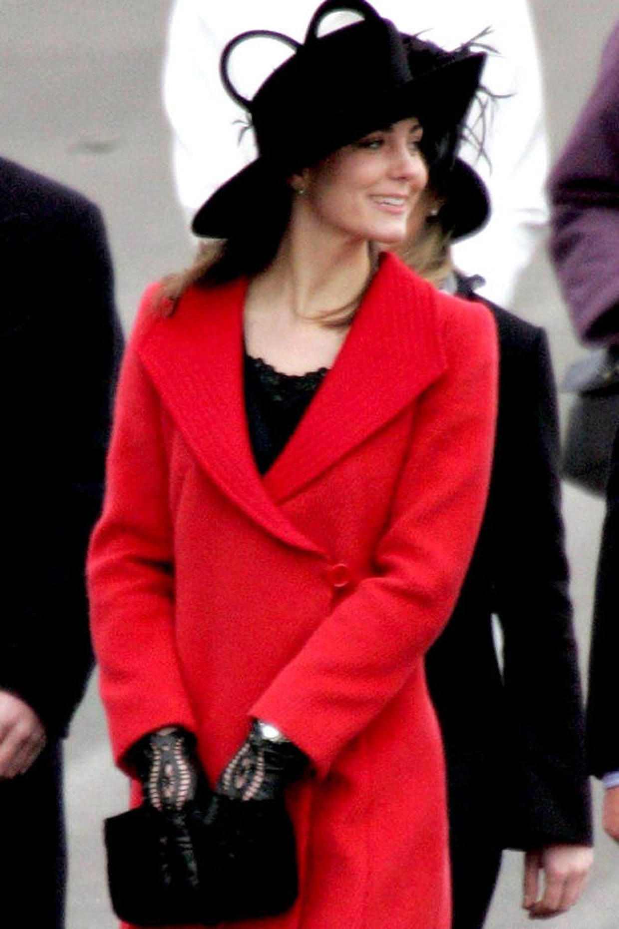 Avec une élégance toute naturelle, Kate Middleton assumait déjà parfaitement son rôle de petite amie de l'héritier du trône d'Angleterre. La voici en rouge et noir, en décembre 2006, lors d'un défilé de l'Académie royale militaire de Sandhurst (Royaume-Uni). Hormis le chapeau - fashion emblème de la famille royale britannique -, on remarque ses magnifiques gants en cuir noir ajouré.