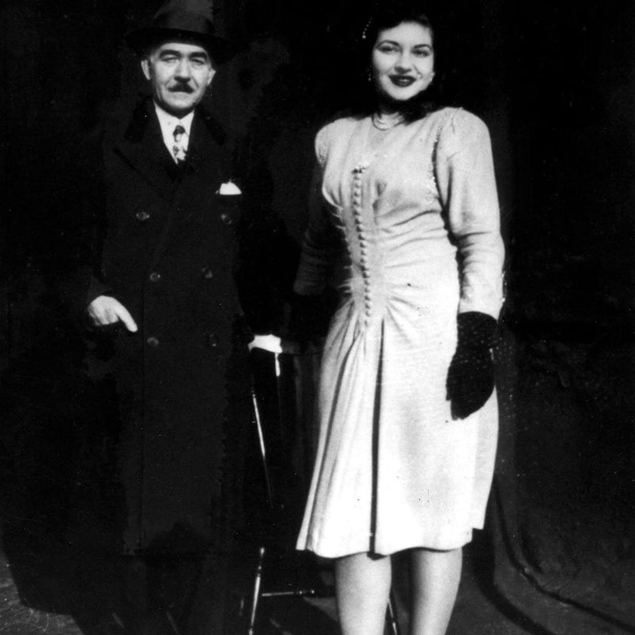 Ici, Maria Callas et son père à New York, en 1949, l'année du mariage de la chanteuse, à 26 ans.Ses parents s'étaient installés dans le quartier grec de New York avant de déménager plusieurs fois. Cette année-là elle s'installe en Italie où elle rencontre son futur mari.