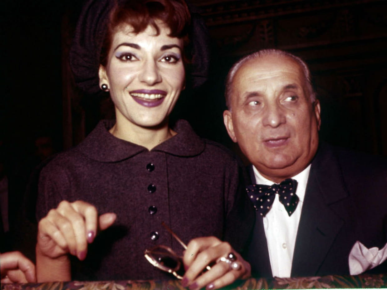 Maria Callas avec son époux en 1958. Elle a 35 ans.
