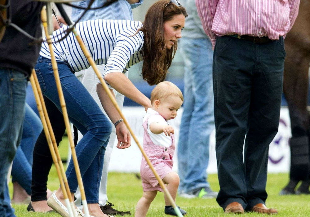 Bébé prend le pas sur papa ! L'adorable petit George fêtera son premier anniversaire le 22 juillet et a visiblement de l'avance sur son âge. De quoi faire la fierté de ses parents, et plus particulièrement de sa maman, la duchesse de Cambridge aux premières loges d'un grand événement ce week-end... Venue soutenir son Prince de mari qui mouillait la chemise pour une oeuvre caritative sur la pelouse du Cirencester Polo Club, la jolie Kate n'avait d'yeux que... pour leur fils. Vêtue d'une marinière et d'un jean confortable, la jeune maman a assisté aux premiers pas de Georges. Kate était venue soutenir son homme ... Elle n'en a pas eu le temps ! Il lui était impossible de poser l'oeil sur son bien-aimé tant bébé Georges avait la bougeotte, ce dernier prenant un malin plaisir à s'échapper de ses bras protecteurs. A quatre pattes ou debout, le petit s'est même agacé de la belle Duchesse qui l'empêchait de tomber. Le bambin a quand même eu besoin de sa mère pour garder l'équilibre... Il ne faut pas pousser maman dans les orties !