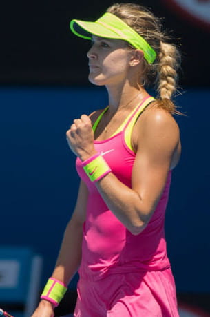 Embarrassée. Eugénie Bouchard, l’ultra douée du tennis, avec son physique de rêve, s’est montrée très gênée quand un journaliste lui a demandé de "tournoyer" pour admirer sa tenue et pas que. Face caméra, la Canadienne s'est exécutée avant de cacher son visage dans ses mains. Mieux vaut admirer son jeu.