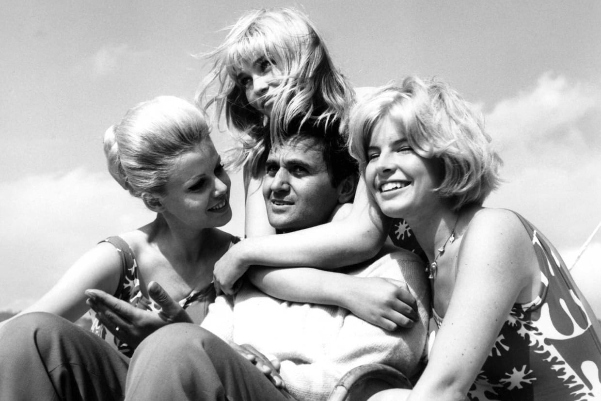 Roger Hanin entouré de starlettes, en 1965. Une belle photo qui nous rappelle sa triste disparition le 11 février 2015.