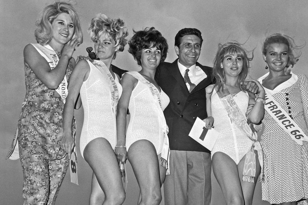 Gilbert Bécaud, lors de l'élection de Miss Cinéma Festival de Cannes, en 1966.