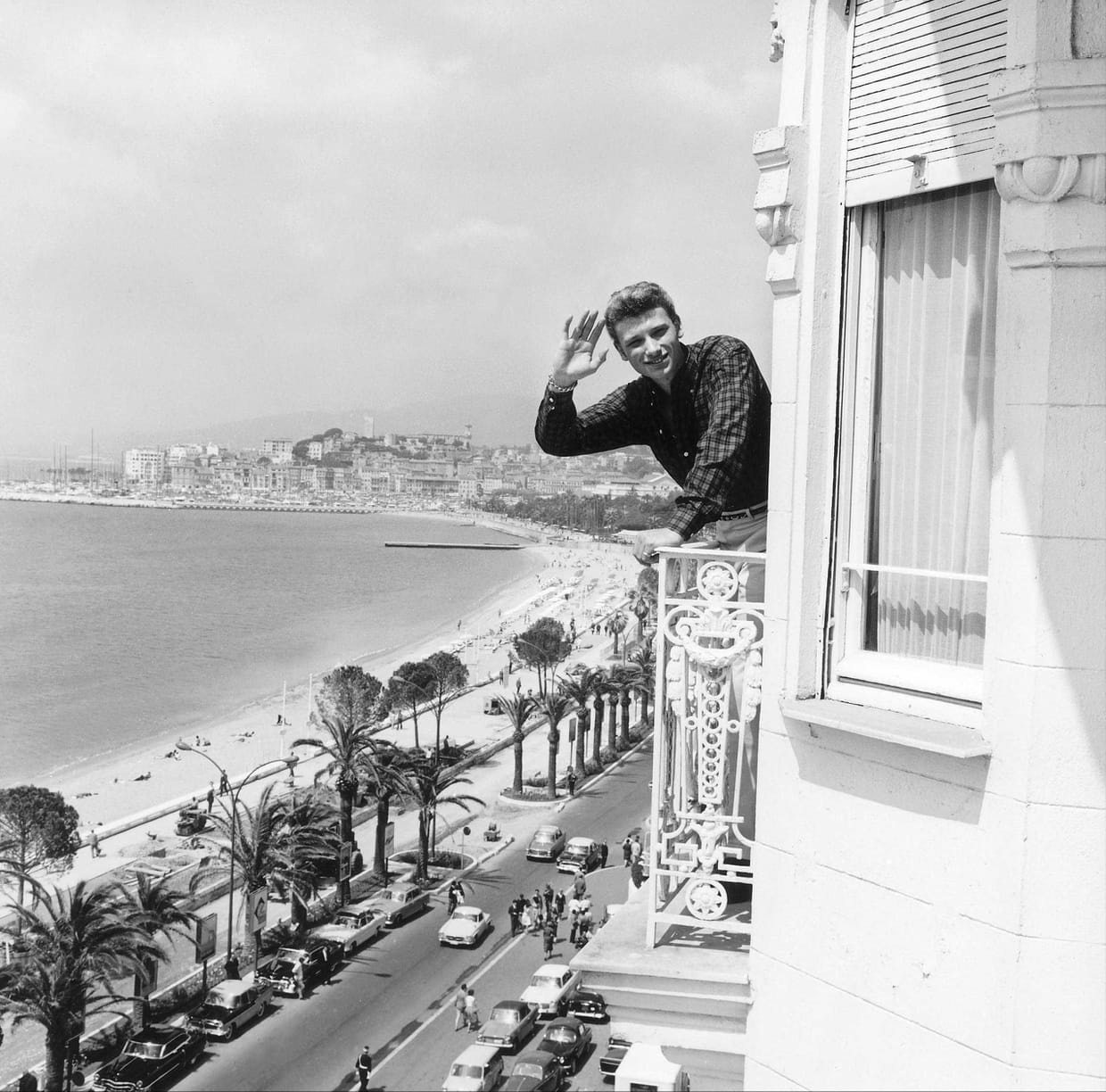 Le chanteur salue Cannes en 1962, alors agé de 19 ans.