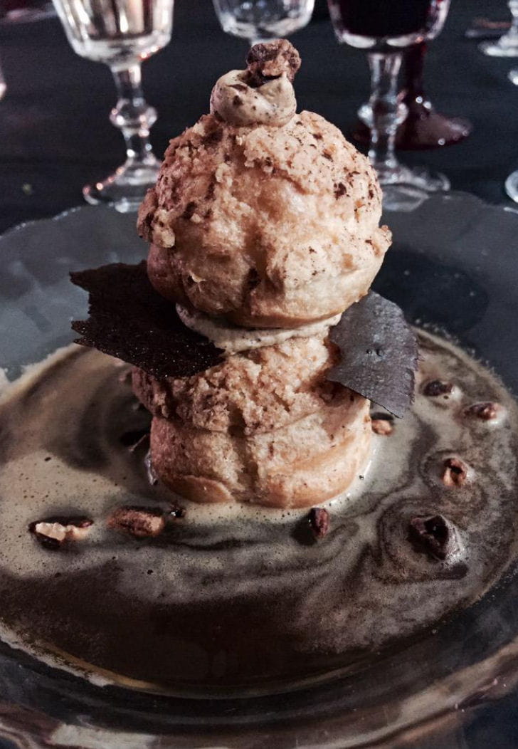 22h. Ce soir, le chef Yves Camdeborde, inspiré par Le Soleil de Satan de Maurice Pialat, nous invite à la messe. Face à Sylvie Pialat et à son fils et dans un décor digne d'une abbaye chic, nous dînons le corps du Christ, une soupe de curé, un filet de Saint-Pierre, une poularde à la diable et une religieuse fourrée en nous délectant autant des saveurs que des idées lumineuses du chef.