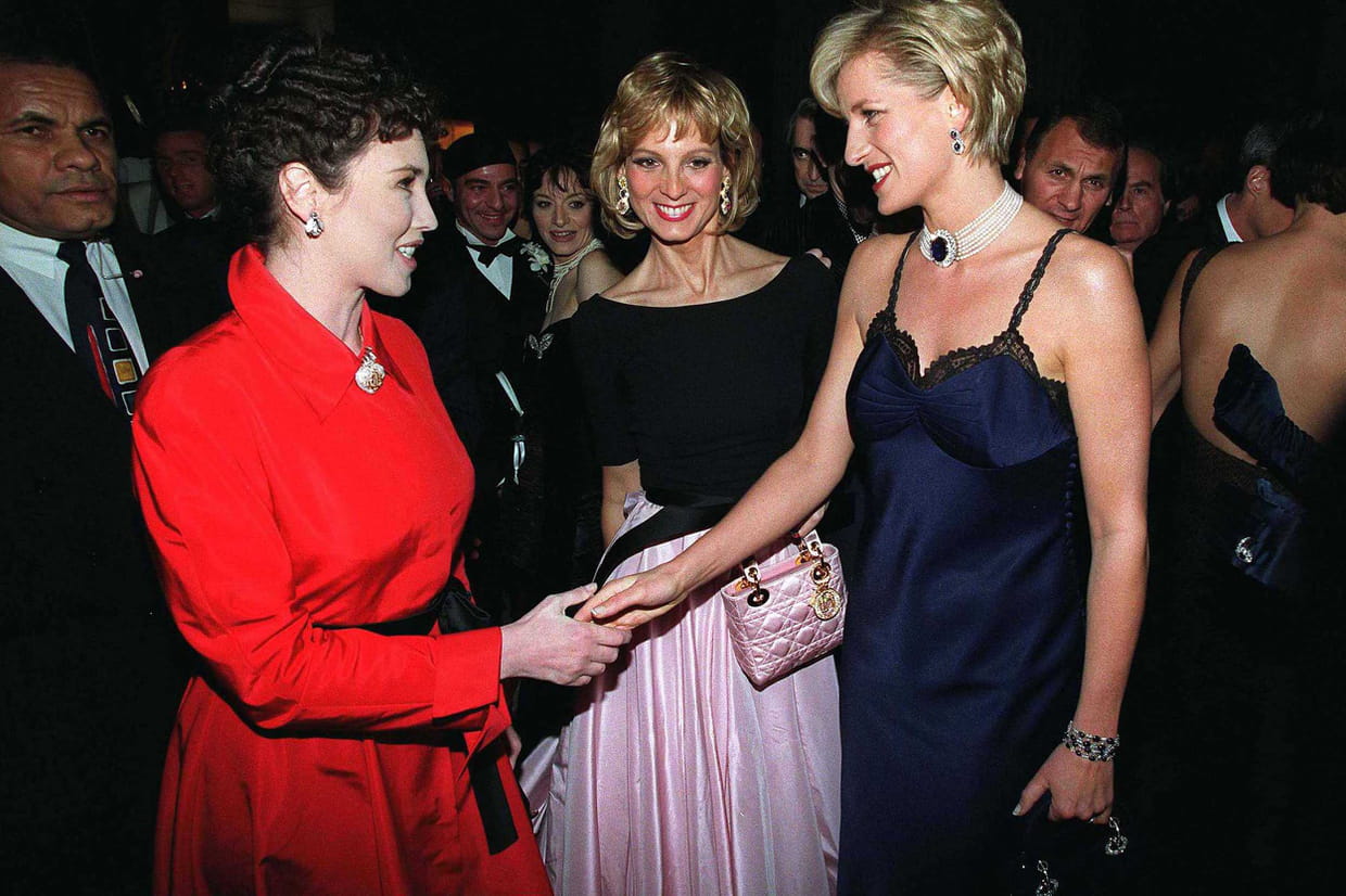 Isabelle Adjani entretient une belle relation avec le milieu de la mode. Visage de la marque de joaillerie Poiray, l'actrice a également été égérie Dior. Ici, elle rencontre Lady Di lors d'une exposition sur le couturier parisien. Un sac Lancel porte même son nom.