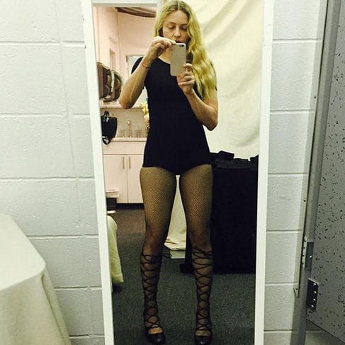 Depuis le début de sa carrière, Madonna est connue pour ses tenues vestimentaires trash, et ce ne sont pas ses 56 ans qui vont lui faire changer de style. La chanteuse pop a posté une photo d’elle sur Twitter afin de partager avec ses 4,3 millions de followers sa dernière trouvaille de fashion victim. Il s’agit de chaussures noires à liserés Gucci. L’artiste a donc tout naturellement posté une photo d’elle en body et collants résille noirs avec ses toutes nouvelles chaussures. Elle commente : "Rien de glamour dans cette salle de bains, mais ces bottes Gucci sont juste canons !" Madonna apparaît totalement naturelle et sans aucun complexe, ce dont les internautes raffolent à en juger par leurs commentaires élogieux : "Queen", "Love you" ou encore "Marry me now".