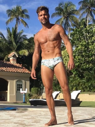 Hot. Ricky Martin a choisi un photo de lui en maillot de bain, tous muscles saillants (et en micro slip de bain), pour souhaiter une bonne année 2016 à ses fans. On lui dit merci !